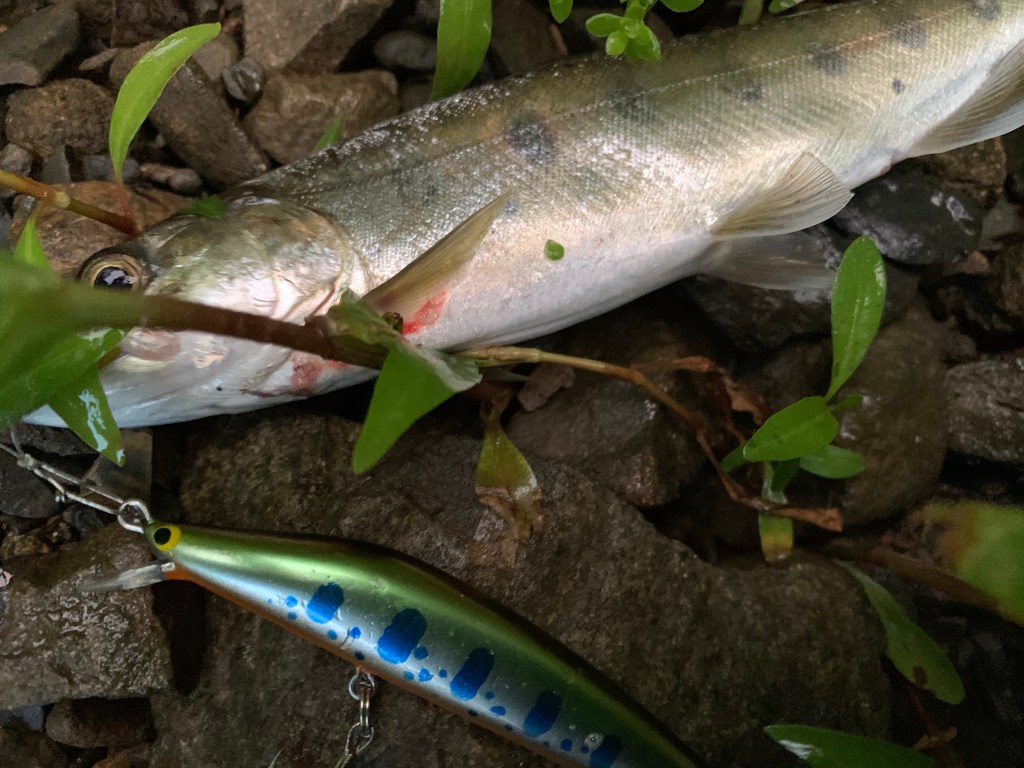 大型を狙う際、自分の釣りには必ず必要になるプラグ。それは程良い調子のシンキングミノー。派手に動かず、フォールは水平。早過ぎず遅過ぎずのカウントに少しの引き抵抗。細身であって、トゥィッチにはヒラ打つ様な、、、そんなシンキングミノー。少し早い流れや、大きな流れ込み等、飛距離を必要とする際にも役に立つ。