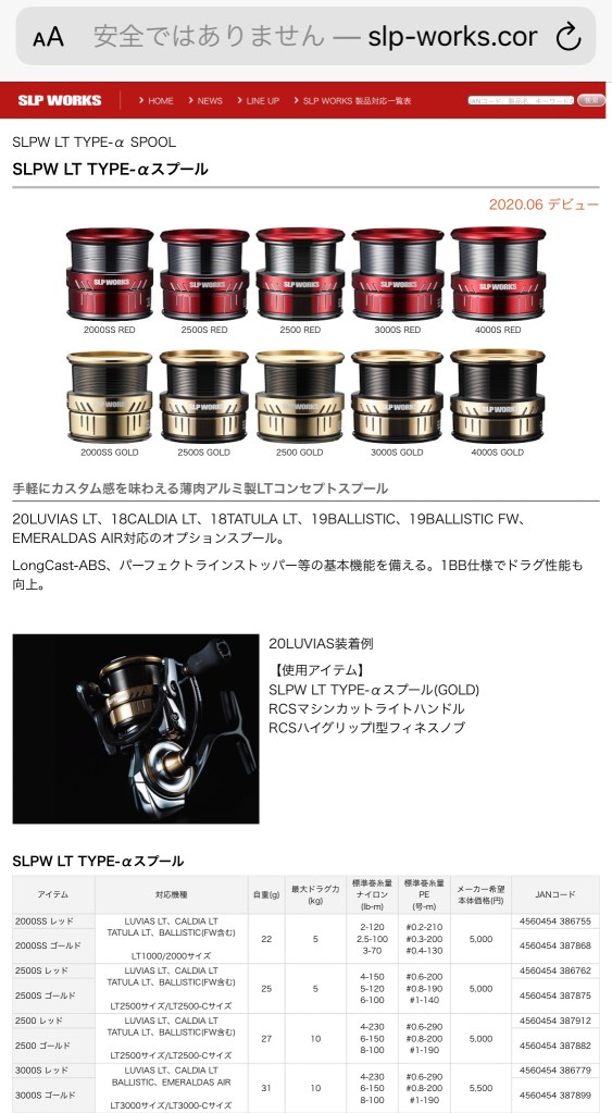 現在愛用機のセルテートをオーバーホールに出している為、代替え機が必要になり見ていたのだが、相当良さそうなのがこの20ルビアス。値段の割に作り込みが凄そう。そして1番面白そうな部分としては、SLPから変えスプールが出ているという事。