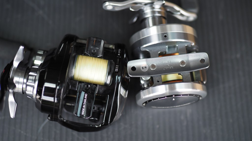 やってみたかった事のひとつに渓流で使用していたリール、ミリオネアCTSVを鱸釣りに流用してみたかった事。PEラインとの相性は抜群なので、キャストや操作性がイイ事は良く解っているつもりだ。それにプラスして鱸釣り用に使用している竿のグランデージシリーズの二本。ひとつはC80H、もうひとつはC76MH。この二つは硬さや太さも違うのだが、最大の違いというか難点というか、実はリールシートがまぁまぁ違う。レングスや使用目的で見れば、ほぼほぼ同じクラスのリールが載せれそうにも思えていたのだが、C76MHの方は、ダイワでいうと1500番手クラスのベイトリールを付けるとリールシートにガタが出る。どんなに締め込んだとしても、前後にズレる症状が出る。コレはリールフットとも関係していて、近頃のロープロ系の分割されているリールフットが悪さをするのである。